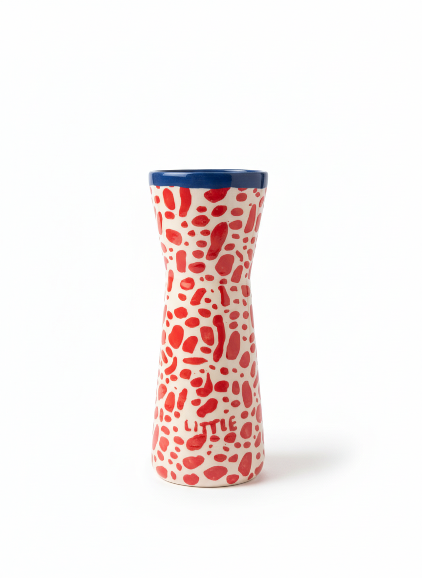 JARRÓN VERTICAL CON MANCHAS ROJAS Y BOCA AZUL / LITTLE