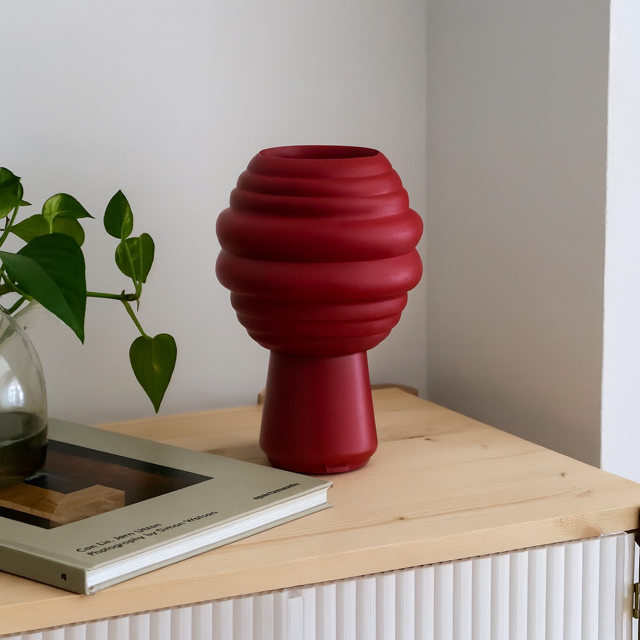 Toda la lámpara está hecha de polímeros vegetales. La base de la lámpara debía cumplir las mismas premisas, por lo que hemos llevado la artesanía 2.0 al siguiente nivel con una superficie completamente lijada y pulida a mano para una experiencia táctil suave y delicada.